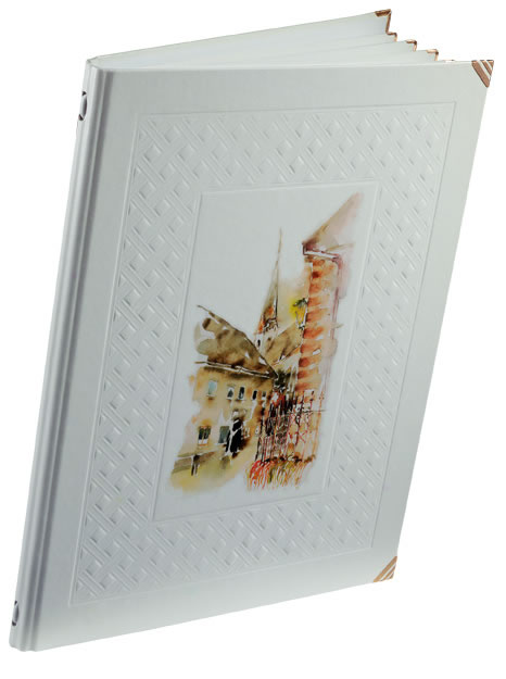Contour-Doppelhülle (vier Sichtseiten) mit Kartonrahmen, traditionell und elegant mit vier Metallecken